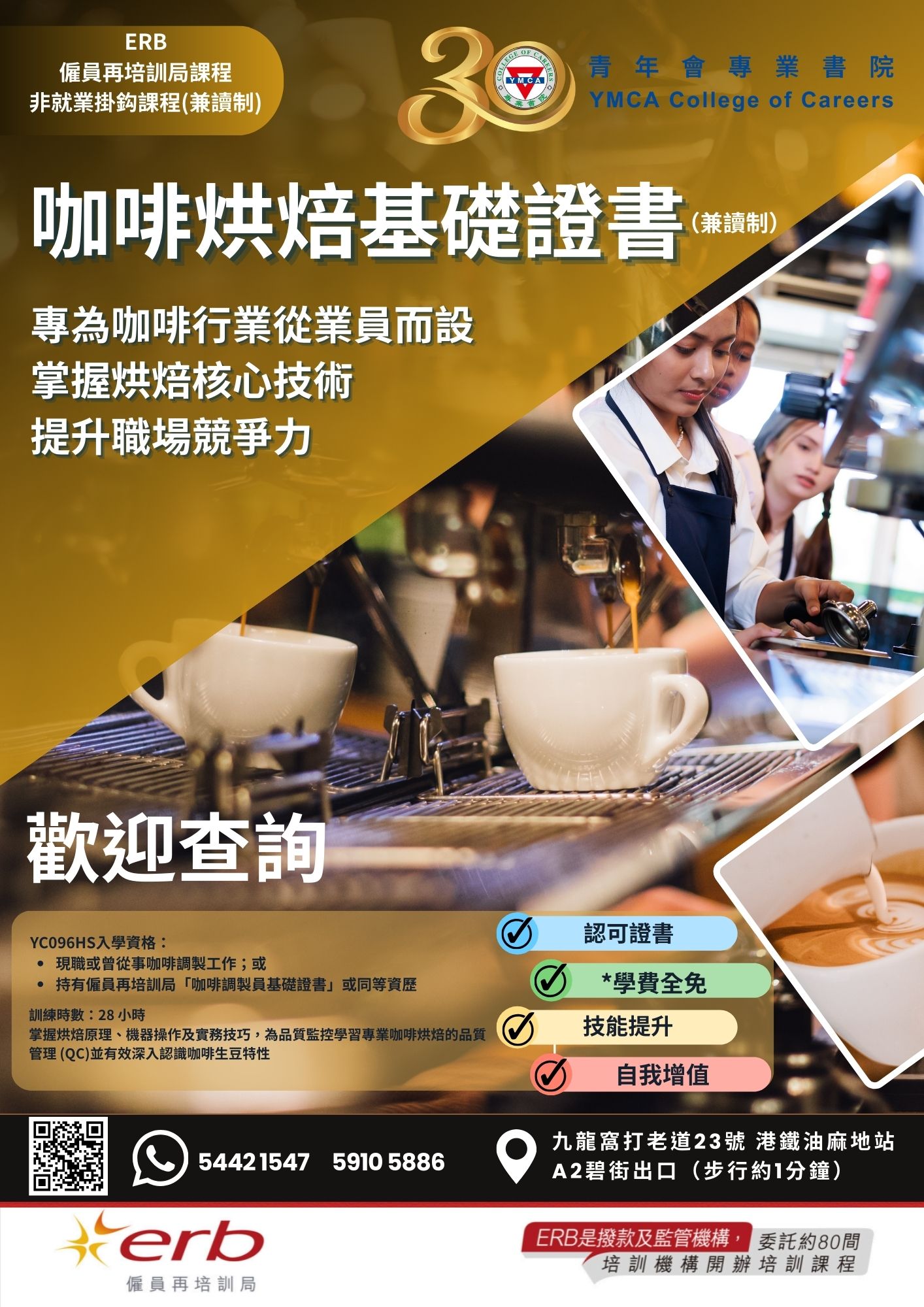 目標:讓學員認識基本咖啡烘焙技巧及原理,掌握基本咖啡烘焙機的運用,認識咖啡烘焙的品質監控,以提高學員的就業能力。