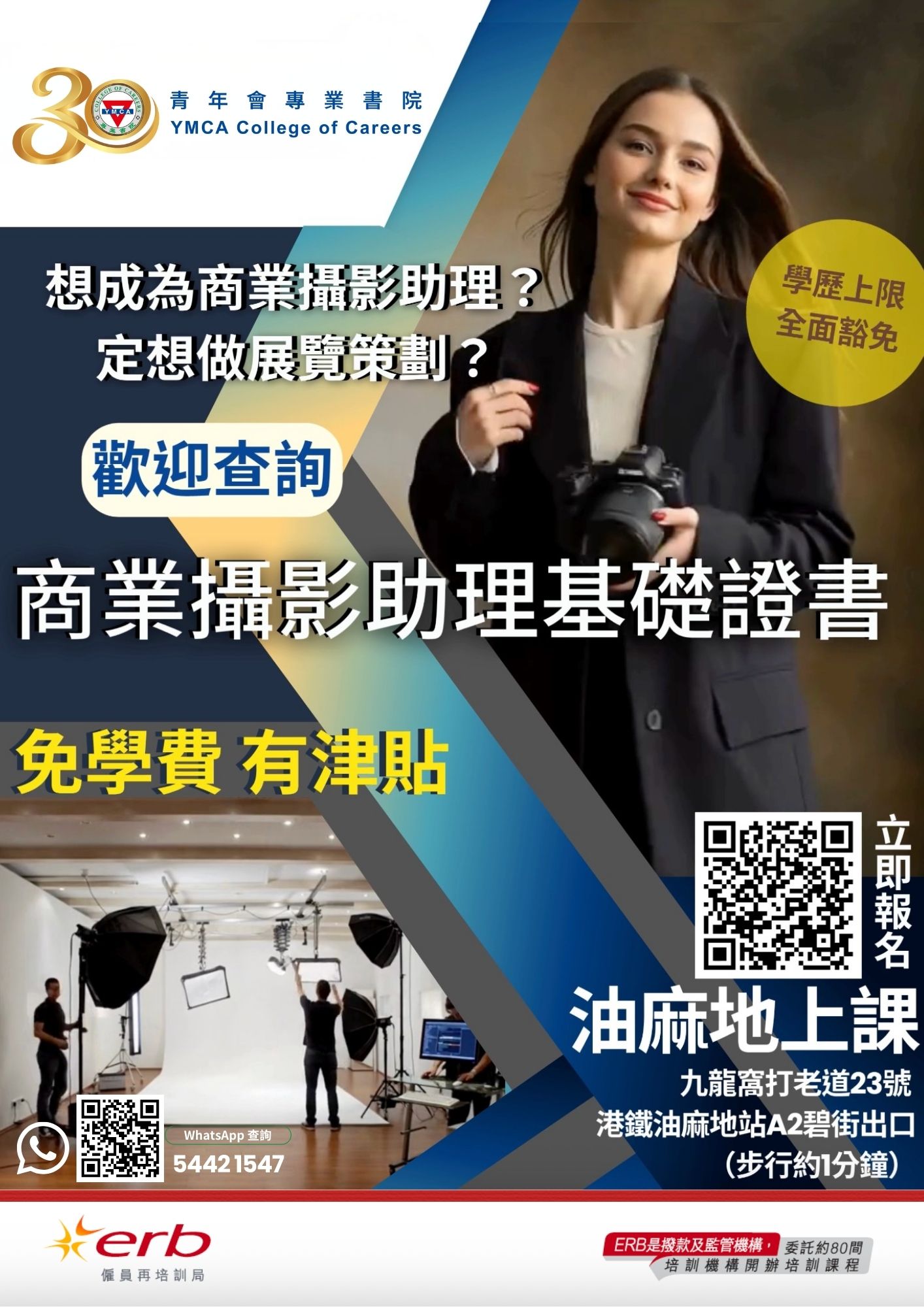 對象:此課程適合有意投身商業攝影或相關行業之失業或待業人士