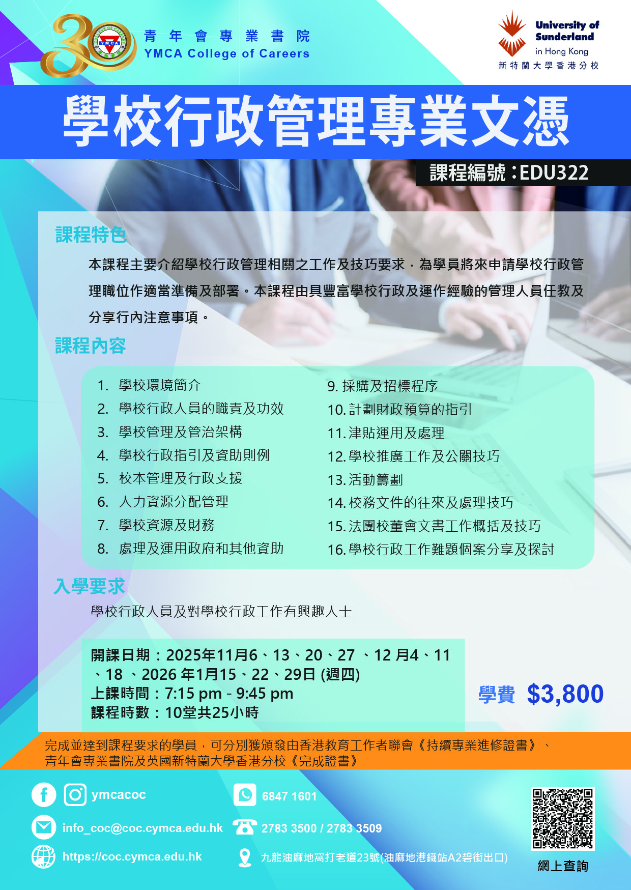 EDU322/2526 7:15 pm - 9:45 pm (週四) : EDU321/2526 7:15 pm - 9:45 pm (週三) : EDU320/2425 7:15 pm - 9:45 pm (週四)
