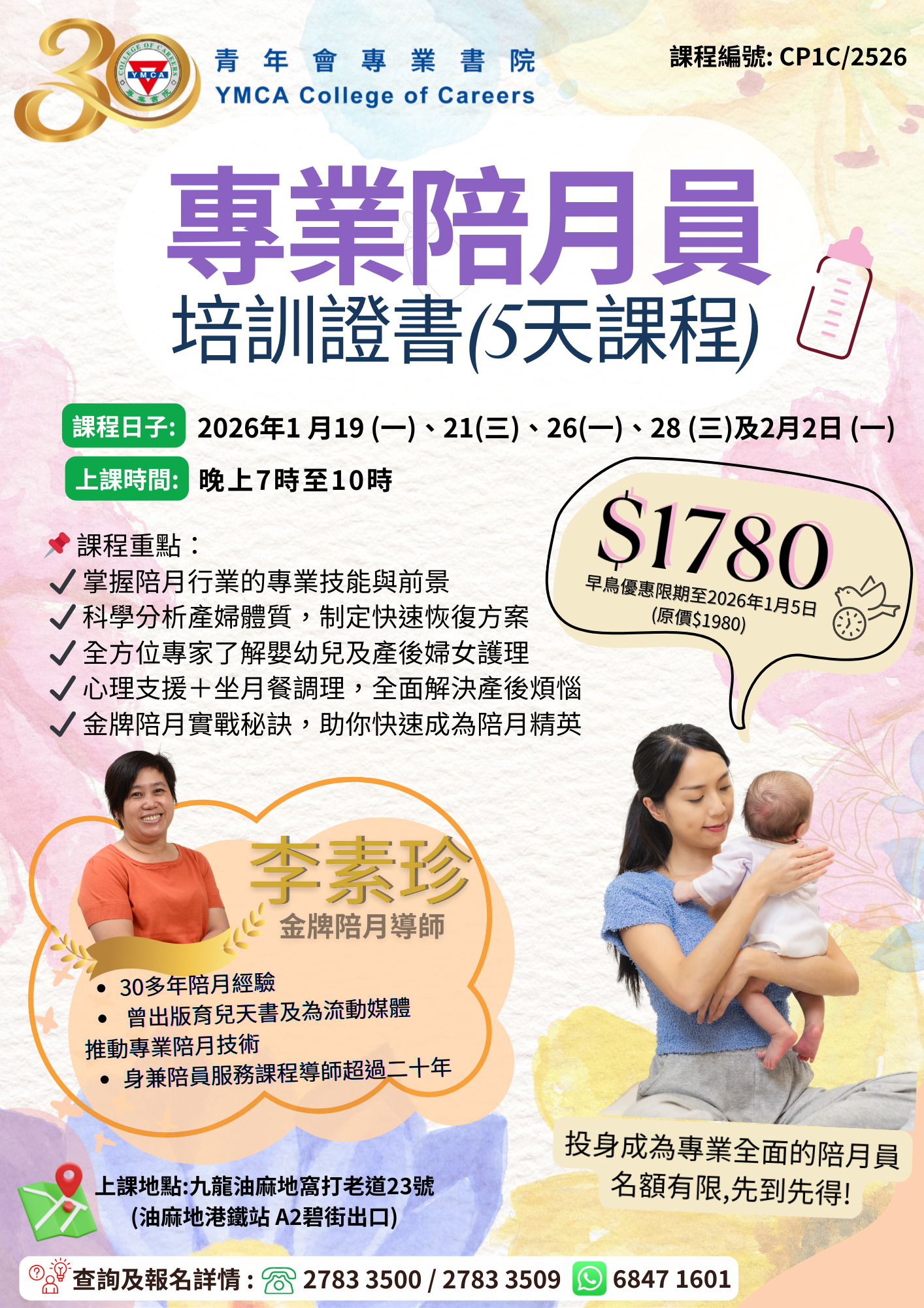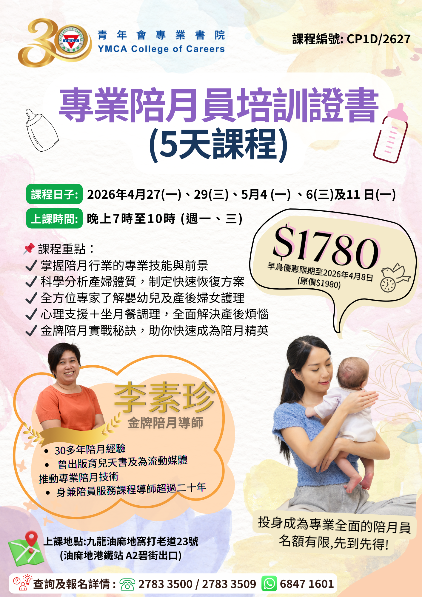 介紹陪月員行業,學習產後護理及產婦心理支援、產婦食物的營養知識及衞生、產婦坐月菜單設計、食物的選材及認識嬰兒發展及照顧技巧等