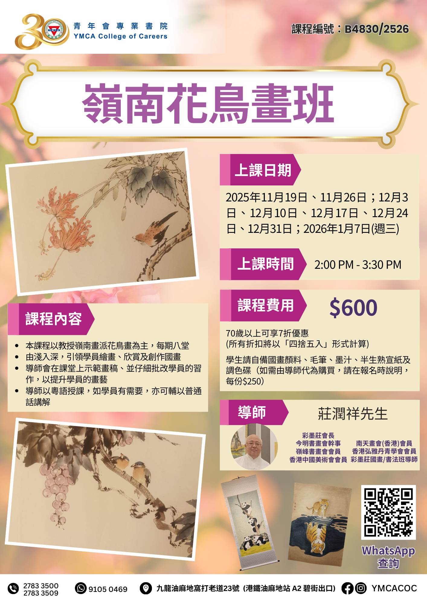 嶺南花鳥畫班 港幣$600元