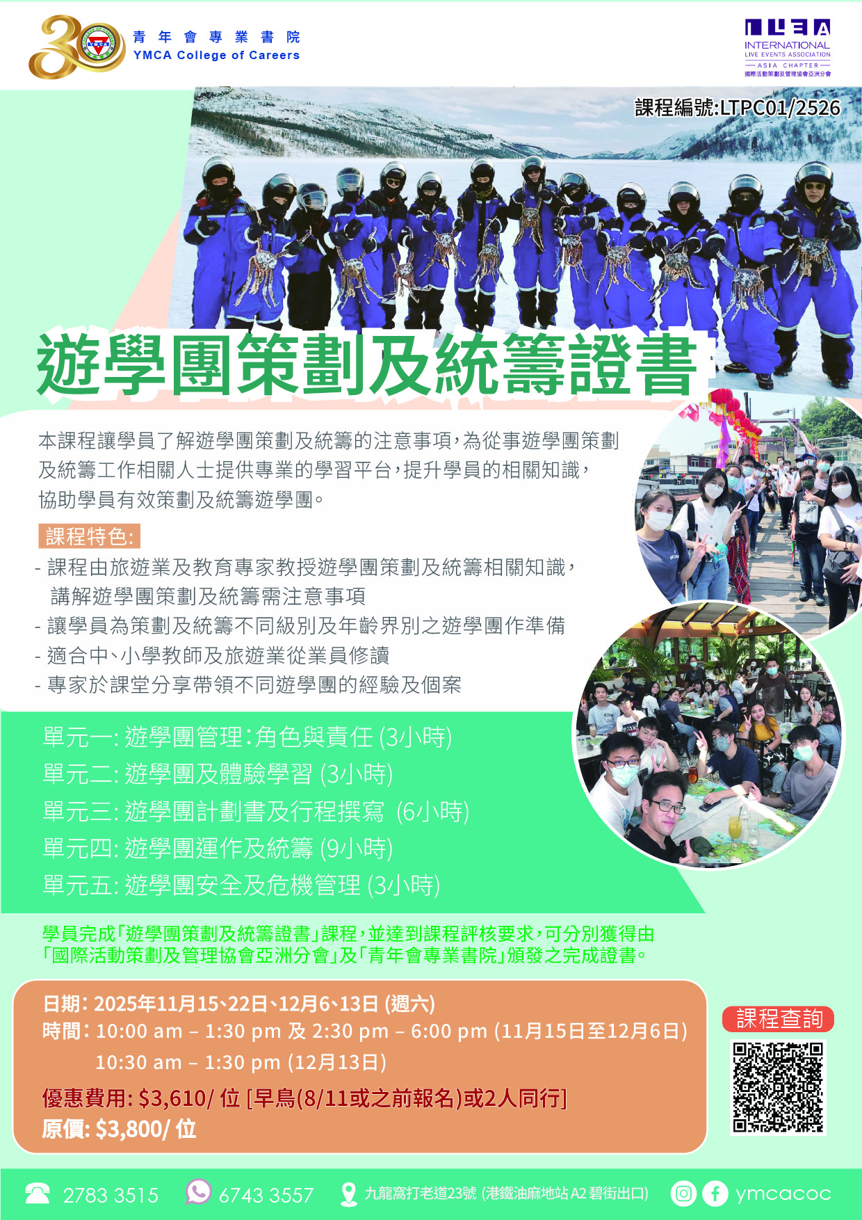 – 課程由旅遊業及教育專家教授遊學團策劃及統籌相關知識, 講解遊學團策劃及統籌需注意事項